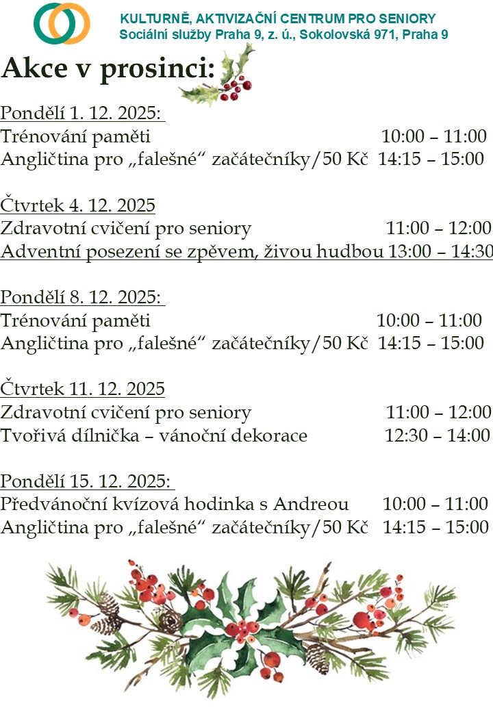 Program v aktivizačním centru Sokolovská (vedle divadla Gong) - Prosinec 2025